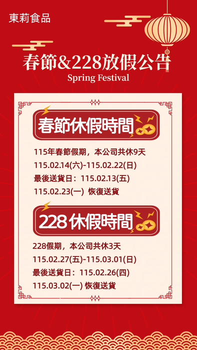 116年春節&228紀念日 休假通知